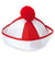 - runde Mütze mit rot-weißen Streifen, roter Bommel und Krempelrand