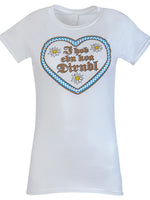T-Shirt HERZI, weiss mit Text: I hob ebn koa Dirndl + Aufdruck: HERZ + Edelweiß Design Bayern Größe M Material: 100 % Baumwolle Lieferumfang: 1 T-Shirt ohne sonstiges Zubehör und das findest Du in...