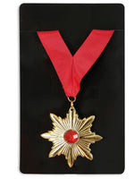 - Medaille Dracula am breiten, roten Band , Anhänger in Sternform ist mit einem roten Stein verziert