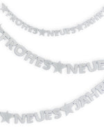 narrenwelt Girlande Silvester metallic Silber Silvestergirlande FROHES NEUES Jahr Silvester Party Feier Accessoires ca.150cm
