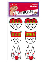 Tattoos zum Aufbringen auf die HautTattos Köln , Motive: Glitzer Herz, Glitzer Wappen, Glitzer Domwir liefern 1 Steckkarte mit 6 Glitzer Motiven auf SteckkarteProduktbeschreibung: Motive Köln, gewünschtes Motiv grob ausschneiden, die Schutzfolie vorsichtig abziehen, das...