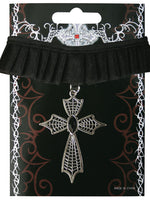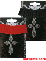 narrenwelt Gothic Halsband Kette Halskette Metall Anhänger Kreuz mit Schmuckstein an Stoffband - sortiert -