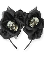 - Haarreif mit schwarzen Blumen und Totenschädel