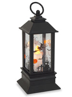 Halloweenlampe, bedruckt mit verschiedenen Motiven: Hexen, Fledermaus, Kürbis, Kreuz, Geist