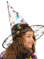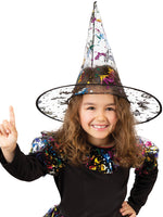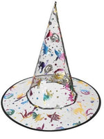 narrenwelt Hexenhut Hexen Hut klein bunter Druck transparent mit Glanzmotiven 56cm Halloween Zauberer Kinder Hut