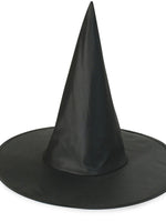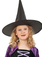 Dieser schlichte, schwarze, spitze Hut macht das Outfit für kleine Hexen und kleine Zauberlehrlinge erst komplett. Er ist aus leichtem, glänzendem Material gefertigt und kann nach Wunsch noch verziert werden.
