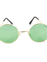 - Brille (klein ) mit abgedunkelten Gläsern, keine Sonnenbrille + Kette mit schwarzer Schnur und goldfarbigem Peace Anhänger ca. 8,5 cm Durchmesser + Stirnband mit Muster