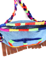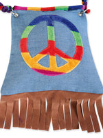 Hippie Tasche mit Zipper, Jeansdesign mit Fransen, Peace-Zeichen, Umhängeriemen