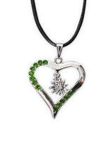 - Kette Herz mit Band Schwarz, grünen Glas-Steinen und Edelweiß