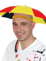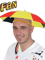 Stadion im Sommer? Damit es Ihnen nicht zu heiß wird haben wir hier für Sie einen Sonnenschirm mit elastischem Band in den Farben schwarz rot und gold Kopf - Sonnenschirm mit elastischem Band in den...