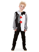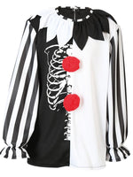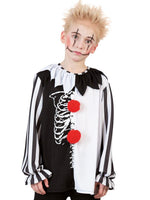 Wow, dieses Horrorclown - Oberteil macht richtig was her! Aufwändig gestaltet aus verschiedenen Mustern verwandelt es kleine und größere Gespenster in einen schaurig schönen Horrorclown. Die tollen Kontrastfarben weiß und schwarz zusammen mit den beiden roten Quasten im Vorderteil sind der Hingucker!. Schauriges Halloween-Outfit für einen gruseligen Geisterauftritt