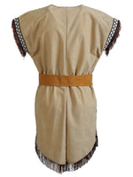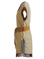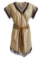 Das Kleid Heller Stern ist aus superweichem Veloursmaterial und hat einen modernen Schnitt mit überhängenden Schultern. Es ist mit braunen Fransen und einer farblich passenden Borte besetzt. Der schöne hellbraune Gürtel, ebenfalls mit Bordüre, gehört zum Kleid und gibt dem Kleid das gewisse Etwas. Ein tolles Outfit für dich als moderne Sqaw, du kannst es noch mit verschiedenen Accessoires aufpeppen, schau dich in unserem Shop um.