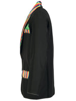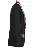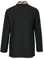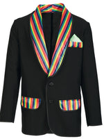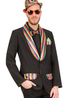 Smoking muss nicht immer elegant sein. Hier kommt die bunte fröhliche Variante. Schwarzer Smoking mit regenbogenfarbenen Revers. Top gekleidet für die Bütt oder als Moderator durch die Karnevalsgala.
