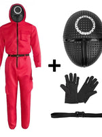 narrenwelt Kostüm Jumpsuit Cosplay Set rot Overall + Gürtel + Handschuhe + Maske Anzug Karneval Gr. L