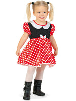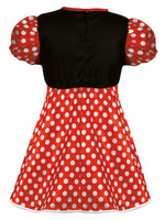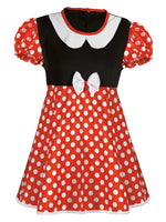 Kleine Mäuse werden dieses schöne Kleid lieben! Mit dem hübschen Pünktchenmuster, den gerüschten kurzen Ärmeln und dem kleinen Schleifchen wirkt es zugleich frech und mädchenhaft. Eine tolle Grundlage für ein schönes Maus-Kostüm im Comic-Stil!
