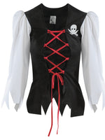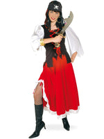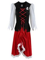 Mit diesem Piraten-Kleid entfachen Sie einen echten Kostüm - Wau-Effekt, denn es ist ein wahrer Hingucker. Die weiße angesetzte Bluse, die angesetzte Corsage und der rote Rock mit Spitzensaum machen das Kleid zum perfekten Outfit für Ihre nächste Mottoparty oder Karnevalsfeier.