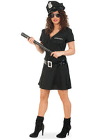 Bei dieser coolen Polizistin nehmen sich Gauner und Spitzbuben besser in Acht! Das schwarze Kleid mit schicker Gürtel-Applikation ist vorne mit Reißverschluss zu schließen. Mit dem figurbetonten Schnitt, Police-Druck und angedeuteten Taschen schafft es den...