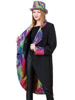 Der Partymantel Clown in den Größen M bis XL ist das ideale Kostüm für Damen, die auf der Suche nach einem verspielten und auffälligen Look sind. Der schwarze Mantel aus Polyester besticht durch seinen bunten Kragen und das bunte Innenfutter. Er eignet sich perfekt für spezielle Anlässe und Verkleidungspartys. Mit seinem Stil im Bereich Jacken, Mäntel & Umhänge wird dieser Mantel sicherlich alle Blicke auf sich ziehen und Ihnen einen unvergesslichen Auftritt bescheren.