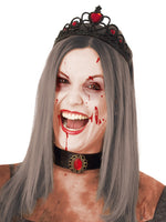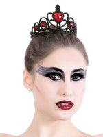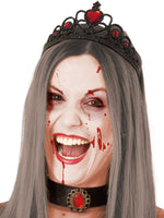 Dieses Diadem in schwarz mit roten Blutsteinen macht deinen Auftritt als mystische, geheimnisvolle und teuflische Queen der Nacht perfekt. Das schwarze Angel-Diadem mit roten Blutsteinen ist die Krönung deines Halloween-Mottoparty-Outfits und alle bösen Geister, Vampire und sonstige Monster-Kreaturen werden vor Erfurcht erzittern.