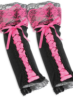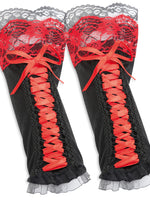 narrenwelt Armstulpen schwarz mit bunter Spitze Damen Handschuhe Fasching Karneval Kostüm Accessoires
