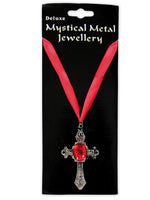 Gothic-Kette Motiv: Kreuz mit rotem Schmuckstein Material: Metall,Kunststoff Lieferung ohne sonstiges Zubehörund das findest Du in unserem Shop : Kostüme - Accessoires - Zubehör für die nächste Party / Events / Kindergeburtstag / Junggesellenabschied /...