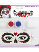 • Lieferumfang: 6 tlg. Set: Augentattoos + 3 x Schminke (weiß, rot, blau) + Applikator + Schwämmchen für Dia de los Muertos, Halloween Party, Festival, Event