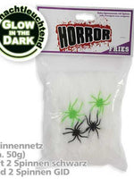 - Lieferumfang: 1 Spinnennetz nachtleuchtend mit 4 Spinnen