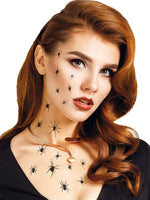 Tattoos zum Aufbringen auf die HautMotiv: schwarze Spinnen , verschiedene Motiveauf SteckkarteProduktbeschreibung: viele schwarze Spinnen, gewünschtes Motiv grob ausschneiden, die Schutzfolie vorsichtig abziehen, das Tattoo mit dem Motiv nach unten auf die saubere Haut drücken,...