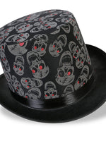 Gut behütet zur Halloween Party. Mit diesem schwarzen Zylinder mit grauen aufgedruckten Totenköpfen sind Sie bestens gerüstet.