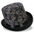 • schwarzer Zylinder mit grauen aufgedruckten Totenköpfen