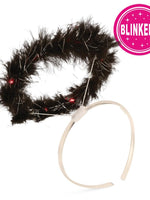 Die Ergänzung zum Engelkostüm: der Heiligenschein. Hier in schwarz und der Clou: mit 10 LED`s und blinkend, verstellbar in 3 Modi, mit flauschigen Marabufedern und Silberfäden. Natürlich zu vielen anderen Gelegenheiten auch kombinierbar. Ebenfalls erhältlich...