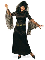elegantes, bodenlanges, Kleid in schwarz mit Trompetenärmel und Goldgürtel Material: fließendes Material, 100% PES Lieferumfang: Kleid Schwarze Witwe Größe 38 ohne sonstiges Zubehörund das findest Du in unserem Shop : Kostüme - Accessoires - Zubehör...