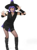 Nachts im Mondschein auf dem Blocksberg kann dir dieses fabelhafte Wesen begegnen. Das schwarz glänzende Minikleid, verziert im Rockteil mit lila Glanzstoff und dem perfekt dazu passenden schwarz/lila Hut, verleihen dir als Trägerin etwas magisches. Ergänze dein Outfit mit Accessoires, wie schwarzen Handschuhen, eine lila Perücke und eine Halloweenkette - alle Accessoires bei uns im Shop : narrenwelt.com