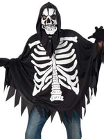 narrenwelt Kostüm Skelett 2tlg Umhang + Haube Komplett Set Halloween Horror Gespenst Erwachsene Unisex Einheitsgröße