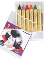 Box mit 6 SchminkstiftenTheaterqualitätFarbzusammenstellung: wie Abbildung ( 1 x schwarz, 1 x grau, 1 x rot, 1 x orange, 1 x grün, 1 x weiß)Inhalt: 11 gMaterial: diverse Materialien/Inhaltsstoffeund das findest Du in unserem Shop...
