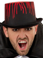 Schaurig und gut behütet erscheinst du zur nächsten Halloween-Mottoparty. Dieser schwarze Zylinder mit rotem Blutprint macht dein Halloweenoutfit komplett und irrsinnig auffallend.