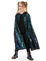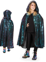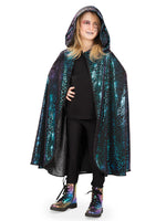 🕷️ Dieses schwarze Cape ist die perfekte Wahl für Halloween oder Fasching und sorgt garantiert für bewundernde Blicke. Es verfügt über eine praktische Kapuze, die zusätzlichen Schutz und einen geheimnisvollen Look bietet. Der besondere Clou ist der holografische Aufdruck mit Spinnenwebenmuster, der im Licht schimmert und das Cape in einen magischen Umhang verwandelt. 🕷️ Dank des hochwertigen Materials aus 100% Polyester ist das Cape angenehm zu tragen, leicht und langlebig. Es lässt sich einfach über der normalen Kleidung tragen und ist ideal für schnelle Kostümwechsel. Ob bei der nächsten Halloween-Party oder im Fasching – mit diesem Cape wird Dein Kind zum Highlight!