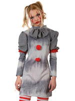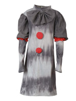 Dieses kurze Kleid sorgt an Halloween für einen coolen gruseligen Look! Das Clownkleid Scary besticht durch seine schlichte, graue Farbe. Quasten im Vorderteil, verschiedene Stoffe und rote Akzente am Ärmel peppen das Kleid, ebenso die schöne Kragenmanschette. So können Horrorclown-Mädchen sich auf jeder Gruselparty sehen lassen!