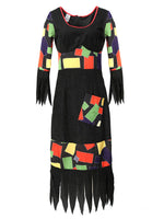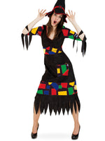 Frech fröhlich bunt tanzt diese Hexe durch die Walburgisnacht. Das Kleid besticht durch seine vielen bunten Flicken.1tlg. Damen-Kleid Hexen Kostüm, gezackter Rockteil und gezackte ÄrmelFarbe: schwarz mit bunten FlickenMaterial: 100% PESLieferung: Kleid Größe 38 (...
