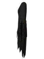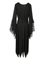 🧹 Verwandeln Sie sich in eine mystische Schönheit mit unserem Hexenkleid 'Muriel' und lassen Sie sich von der dunklen Magie umhüllen! Das lange, schwarze Kleid ist am Saum zipfelig geschnitten, was ihm einen extra Hauch von Mystik verleiht. Der geraffte Brustbereich schmeichelt der Figur und sorgt für eine schlanke Silhouette, während zugleich eine geheimnisvolle Aura erzeugt wird. Die Trompetenärmel sind aus schwarzem Tüll mit Spinnwebendruck. Tauchen Sie ein in die Welt der Hexen und lassen Sie sich von unserem Kleid 'Muriel' in die düsteren Geheimnisse der Nacht entführen!"