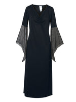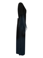🕷️ Dieses Kostüm ist perfekt für diejenigen, die das Unbekannte erkunden und die Nacht mit ihrer Präsenz erhellen möchten. Ob du dich als geheimnisvolle Hexe, eine verzaubernde Zauberin oder eine düstere Schicksalsbotin präsentieren möchtest, das Tizia Kostüm wird sicherlich alle Blicke auf sich ziehen und deine Halloween- oder Faschingsnacht unvergesslich machen.🕷️ Das Herzstück dieses Kostüms ist das lange Kleid, das aus schwarzem Stoff gefertigt ist und mit einem verführerischen V-Ausschnitt deine Figur betont. Die Trompetenärmel verleihen dem Kleid eine extravagante Note und sorgen für einen dramatischen Auftritt.