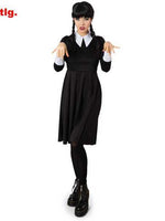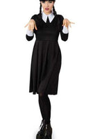 Wow, dieses brave Highschool - Kleid erinnert an ein blasses, mystisches, aufmüpfiges Highschool - Mädchen an der Nevermore Academy! Das aufwendig gestaltete Kleid in schwarz mit weißem Kragen und weißen Armblenden verwandelt Fans der schaurigen Mysterie - Serie in gleichgesinnte Freaks und Seelenversandte. Die kühlen Kontrastfarben weiß und schwarz entsprechend absolut dem Stil von Wendy und machen das Kostüm zum Hingucker. Du liegst mit diesem Kostüm voll im Trend. Das modellgleiche Mädchenkostüm und die passende Perücke bei uns erhältlich: narrenwelt.com