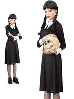 Wow, dieses brave Highschool - Kleid erinnert an ein blasses, mystisches, aufmüpfiges Highschool - Mädchen an der Nevermore Academy! Das aufwendig gestaltete Kleid in schwarz mit weißem Kragen und weißen Armblenden verwandelt Fans der schaurigen Mysterie - Serie in gleichgesinnte Freaks und Seelenversandte. Die kühlen Kontrastfarben weiß und schwarz entsprechend absolut dem Stil von Wendy und machen das Kostüm zum Hingucker. Du liegst mit diesem Kostüm voll im Trend. Das modellgleiche Damenkostüm und die passende Perücke bei uns erhältlich: narrenwelt.com