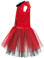 Es gibt Teufelinnen, es gibt Ballett-Tänzerinnen, und jetzt gibt es auch teuflische Ballerinas! Das tolle Kleid besteht aus hochwertigem Pannesamt und reichlich mehrlagigem Tüll für den gewünschten Tutu-Look. Als besondere Details wirken glänzende Pailletten und flauschige Federn aus Plüsch. Damit kommen tanzbegeisterte kleine Teufelinnen voll auf ihre Kosten!