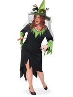 narrenwelt Kostüm Märchenhexe Damen Kleid 1tlg. Halloween Big Damen Hexenkleid Hexenkostüm Hexe Gr. 46 - 58