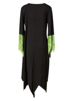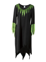 Für die Verwandlung braucht es keine Hexerei. Dieses klassische Hexenkleid verwandelt dich schnell in ein magisches Wesen. Die giftgrünen Kontrasten an Ausschnitt und Armabschluss verleihen diesem Kleid das besondere Flair und die gezackten Abschlüsse geben dem Kostüm den letzten Schliff. Der dazugehörige Hut ist bei uns erhältlich: narrenwelt.com