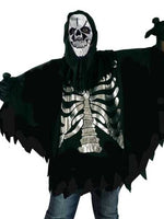 narrenwelt Kostüm Silver Skull Umhang Skelett 1tlg mit Haube Halloween Kinder Gespenst Gr. 128/140 - 152/164