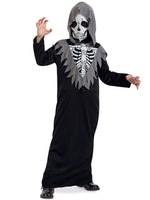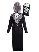 narrenwelt Kostüm Skelett Robe 1-tlg. mit Kapuze + Maske Halloween Fasching Kinderkostüm Größe 128/140 + 164
