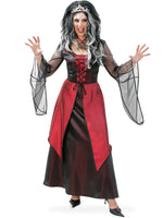 In der Dunkelheit kommen sie aus ihren Gruften und beginnen den Tanz der Vampire. Grausig schön reicht diese Vampirkönigin die Hand zum Menuett. Doch Vorsicht, die Schöne ist ganz schön bissig! Dieses historische Kleid versetzt sie eine längst vergangene Zeit. Lange Tüll Trompetenärmel, eine klassische Schnürung, und ein Rock im Lagenlook erinnert an die Haute Couture zur Zeit Draculas.