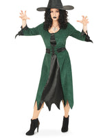 narrenwelt Kostüm Waldhexe Damen Hexe Kleid lang 1tlg. mit Gürtel Hexe Halloween Hexenkleid Hexenkostüm Gr. 38 - 46